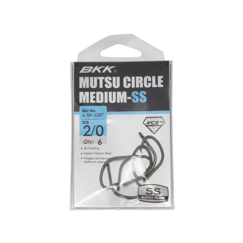 The BKK Mutsu Circle Medium-SS is a highly versatile hook designed for both inshore and offshore fishing with live or chunk baits. Featuring a razor-sharp offset point and BKK’s Super Slide (SS) coating, it ensures faster hook-ups and effortless bait rigging. Constructed with BKK’s proprietary Hyper Carbon Steel (HCS), this hook strikes the perfect balance between strength and lightness—allowing smaller baits to move naturally while still holding up against powerful fish. The addition of a solid ring enhances bait movement, making it swim more freely to attract more strikes. Whether targeting inshore species or battling offshore giants, this hook delivers top-tier performance.