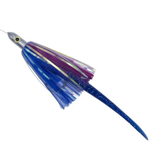 This high-performance Ilander lure rigged with a Ron Z tail is a deadly combination for targeting tuna, mahi, wahoo, and other pelagic predators. The Ilander’s flashy skirt and hydrodynamic head create irresistible action, while the Ron Z tail adds lifelike movement that triggers aggressive strikes. Perfect for high-speed trolling or slow presentations—this lure is a proven producer in offshore waters. Sold Rigged with a 10/0 Stainless Steel hooked on 100 lb flourocarbon.
