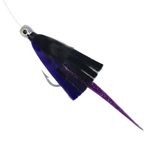 The CRR Rigged Seastar in Black/Purple, paired with a RonZ Purple Tail, is a premium trolling lure designed specifically for targeting tuna and wahoo. Built by Custom Rod & Reel, this lure combines proven color profiles and action to provoke aggressive strikes from even the most finicky predators. Sold Rigged with a 10/0 Stainless Steel hooked on 100 lb flourocarbon.