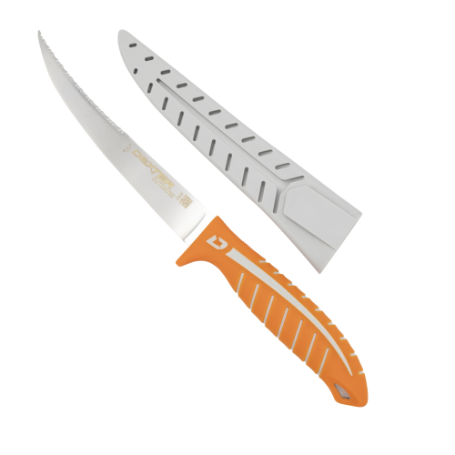 Designed specifically for anglers, the all-new Dextreme series showcases a versatile 2-in-1 blade paired with an ergonomic handle, engineered to deliver uncompromised cutting performance. The dual blade design allows users to cut through scales without dulling the fillet blade, making filleting more efficient with just one knife. The upper Tiger edge tackles scales and tougher surfaces, preserving the sharpness of the fillet blade for cleaner cuts. Simply flip the DEXGRIP™ ambidextrous handle to access the lower blade, ideal for precise work. This comfortable, non-slip handle fits any hand and finger position for enhanced control. Its stiff blade is sharp, flexible, and durable. This 2-in-1 knife is built to be the only knife anglers need.
