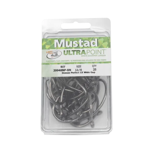 The Mustad Demon® Wide Gap Circle Hook is designed for superior hook-up ratios, featuring a true circle hook shape with an extra-wide gap. Its distinct curved design ensures that when a fish takes the bait, the hook naturally moves to the corner of the mouth or lip, reducing the chances of deep hooking and making it the ultimate choice for catch-and-release fishing. Versatile across multiple techniques, it excels in drifting live bait for Tarpon, trolling bridle-rigged bait for Marlin, or deep-dropping for Swordfish. Made for serious anglers, this hook is perfect for targeting Tuna, Sailfish, Sharks, Wahoo, Halibut, Amberjack, Striped Bass, and more. To maximize effectiveness, always match the hook size to the bait and use a firm tightening of the line rather than a hard strike for the best results.