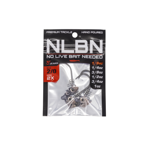 Each jig head is meticulously balanced to minimize body roll, allowing for a natural presentation in the water. Featuring custom oversized 3D eyes for enhanced flash, these jig heads are available in four colors that perfectly match the NLBN soft plastic lineup.