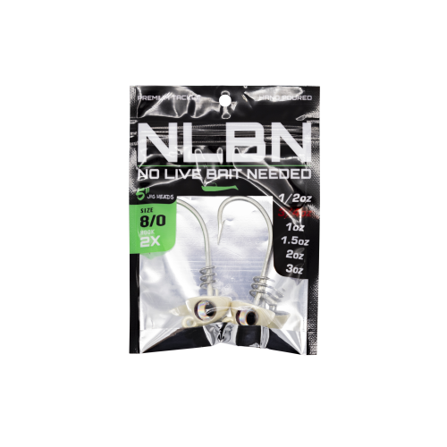 Each jig head is meticulously balanced to minimize body roll, allowing for a natural presentation in the water. Featuring custom oversized 3D eyes for enhanced flash, these jig heads are available in four colors that perfectly match the NLBN soft plastic lineup.